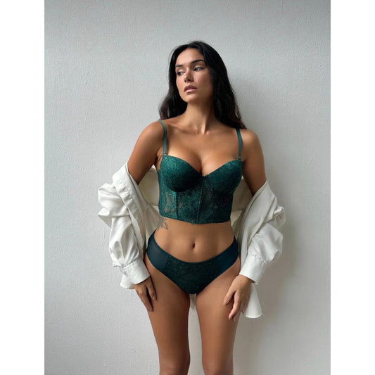 Lunelle Zümrüt Yeşili Dantel Büstiyer Sütyen ve Külot Kadın İç Giyim Takımı