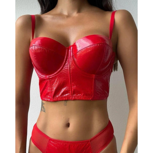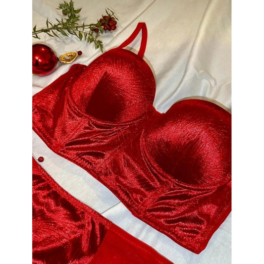 Lunelle Kırmızı Parlak Büstiyer Sütyen ve Transparan Külot Kadın İç Giyim Takımı