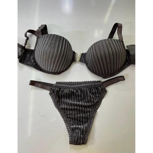 Lunelle Antrasit Çizgili Push-Up Sütyen ve Tanga Külot Kadın İç Giyim Takımı