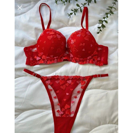 Lunelle Kırmızı Kalp Desenli Dantel İç Giyim Takımı