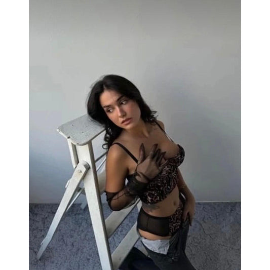 Lunelle Leopar Desenli Büstiyer Sütyen ve Transparan Külot Kadın İç Giyim Takımı