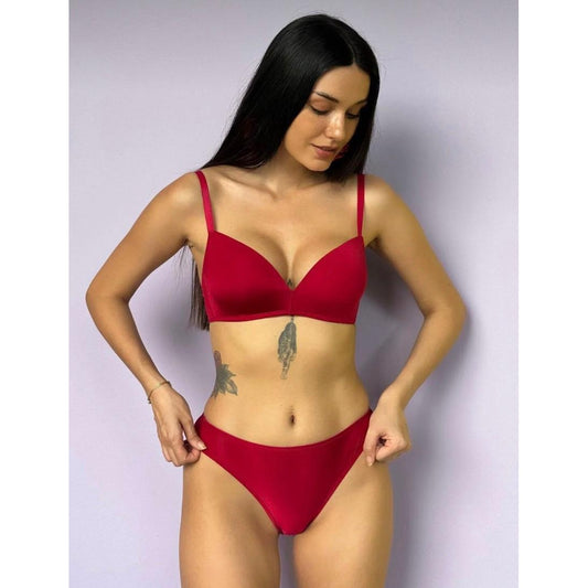 Lunelle Kırmızı Dikişsiz Desteksiz Sütyen Takımı – Günlük Konforlu Basic Sütyen & Külot Seti
