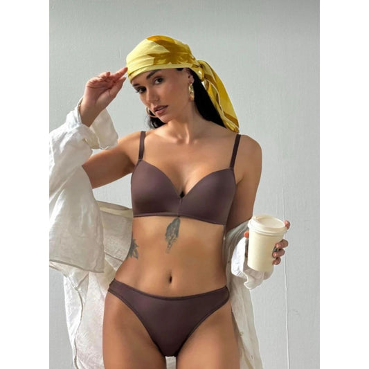 Lunelle Kahverengi Dikişsiz Desteksiz Sütyen Takımı – Günlük Konforlu Basic Sütyen & Külot Seti