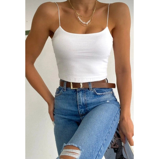 Lunelle Beyaz Askılı Crop Top – Esnek Basic Premium Atlet (Vücuda Oturan)